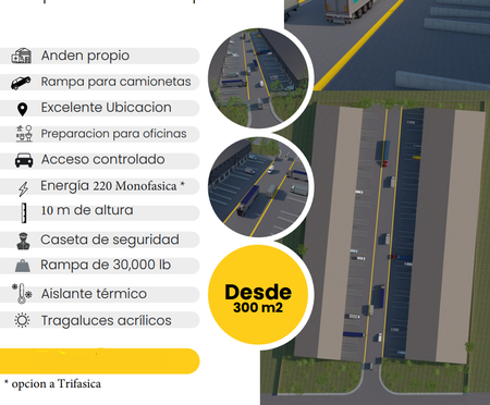 Bodegas en modulos desde 300 m2 y de 400 m2 hasta 6,800m2