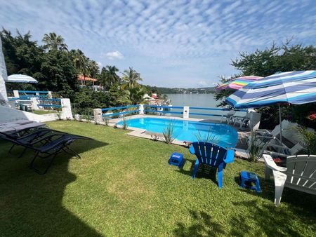 Disfrute, invierta o viva en esta propiedad ubicada en una bahia con arena en el lago de Tequesquitengo, con gran potencial dado su terreno para seguir creciendo o desarrollar.