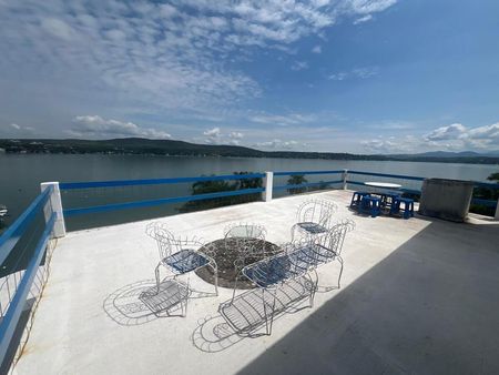 Bajando podemos encontrar una alberca grande, jardines, 2 medios baños, bar, otra terraza más y su acceso directo al lago.