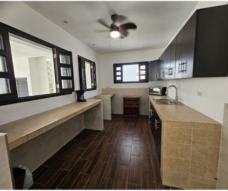 El segundo piso ofrece su propia entrada con 2 dormitorios, 2 baños, sala, comedor, cocina equipada con electrodomésticos nuevos, sistema de ósmosis, isla de granito y carpintería bellamente diseñada, además de su propia estación de café. Disfrute de la brisa del mar y de las increíbles puestas de sol bajo la terraza cubierta y los balcones. Equipo de 2 aires acondicionados, abanicos, closet, cortinas y algunos muebles. El estacionamiento no es un problema; esta propiedad ofrece un área para 3 autos.