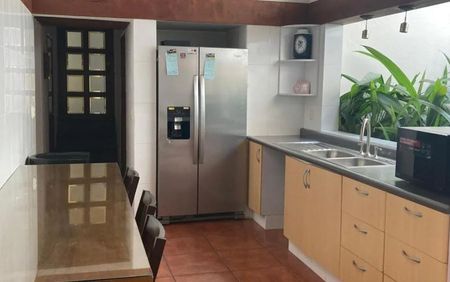 HERMOSA CASA EN UNA CALLE TRANQUILA CON UN HERMOSO ENTORNO , CON ARBOLES MADUROS , LINDO JARDÍN. LA CASA TIENE 4 RECÁMARAS EN LA CASA PRINCIPAL, ASÍ COMO UNA MAS EN ZONA DE JARDÍN, COMEDOR, COCINA , AREA DE BODEGA, ESPACIO PARA 4 A 5 CARROS . SE TIENE PALAPA, ALBERCA Y JACUZZI. EN OTRA ZONA INDEPENDIENTE, HAY 2 BUNGALOWS AMBOS DE 2 RECÁMARAS CON BAÑO. LA CASA ESTA IMPECABLE .