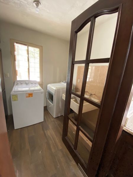 Cocina integral con estufa, roperias, lavandería techada y cochera para 2 autos.