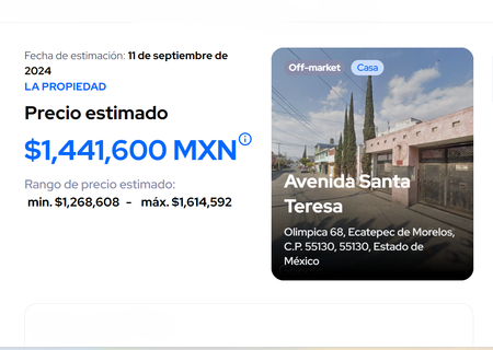 El costo comercial aproximado de esta propiedad es de: $1,441,600