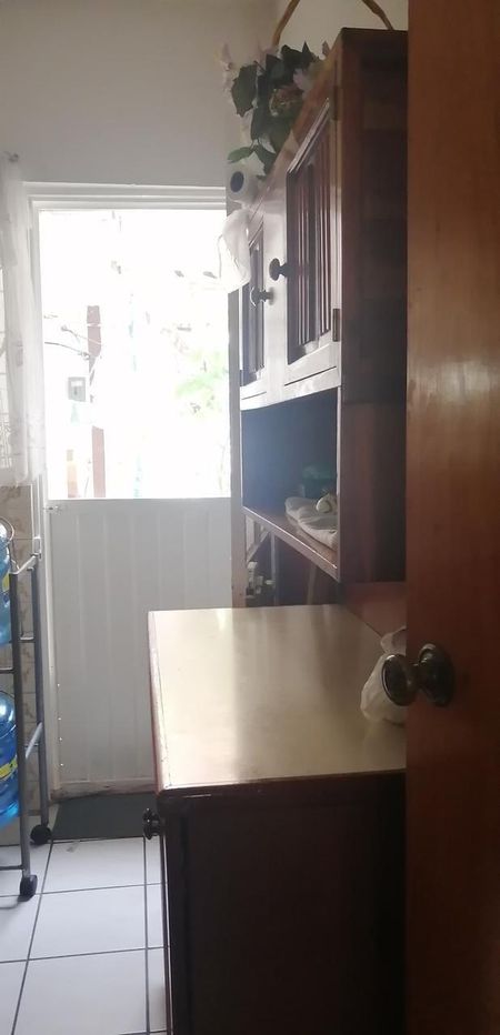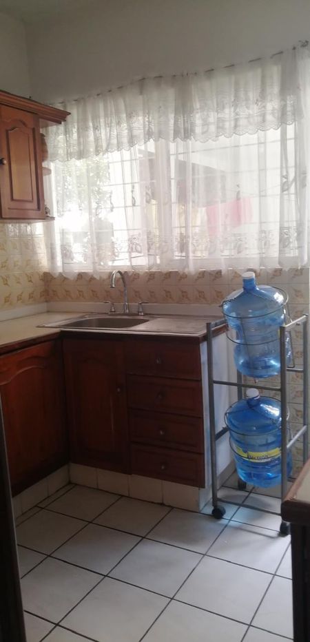 Casa habitación de 2 niveles con garaje para 1 coche grande, sala, comedor amplio, 1/2 baño de visitas, cocina integral de cedro, área de servicio. Tanque estacionario, cisterna, jardincito atrás, tendedero, escaleras de Herreria para subir a la azotea. 1 habitación en planta baja pequeña con baño completo, closet y mueble de madera empotrado.