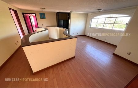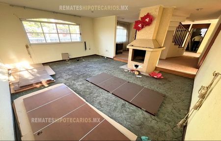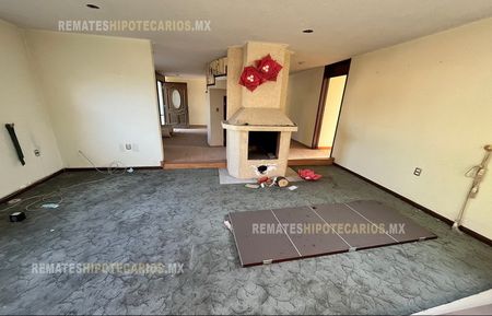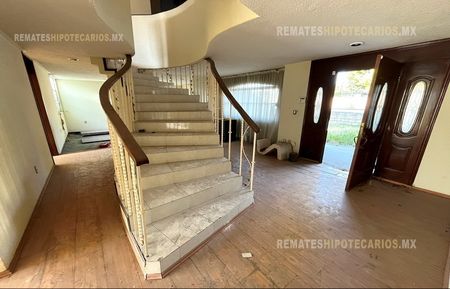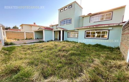 Casa en venta en Metepec de Remate Bancario de 601.79 m2 de terreno y 329.81 m2 de construcción. Planta Baja: Sala, comedor, chimenea, cocina, baño completo, oficina o despacho, recámara de visitas con baño y closet (recámara 4), cuarto de lavado con baño, patio de servicio, amplio jardín atrás y otro jardín al frente, bodega, 4 estacionamientos. Primer Piso: 3 recámaras con closet, la principal con vestidor y terraza, área de lectura o estudio (family room), closet de blancos. Requiere remodelación total. Adjudicada, con posesión (desocupada). Entrega inmediata. Valor Comercial: $9.5 mdp. PRECIO DE REMATE BANCARIO: $4,800,000.00 PESOS. Pago directo al banco. Paseo de la Asunción 401, Colonia Llano Grande, Metepec, Estado de México, C.P. 52172. Citas con un día de anticipación al 56 3541-1424 y 5559897315. Los Remates Bancarios NO se pueden adquirir mediante créditos hipotecarios, solo pago de contado con recursos propios. Cesión de derechos adjudicatarios ante notario público. Tenemos más de 250 inmuebles de recuperación bancaria en la Ciudad de México y alrededores. Solicita catálogo vía WhatsApp o una cita en nuestras oficinas. Para más información y propiedades visita RematesHipotecarios.mx