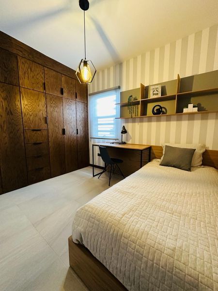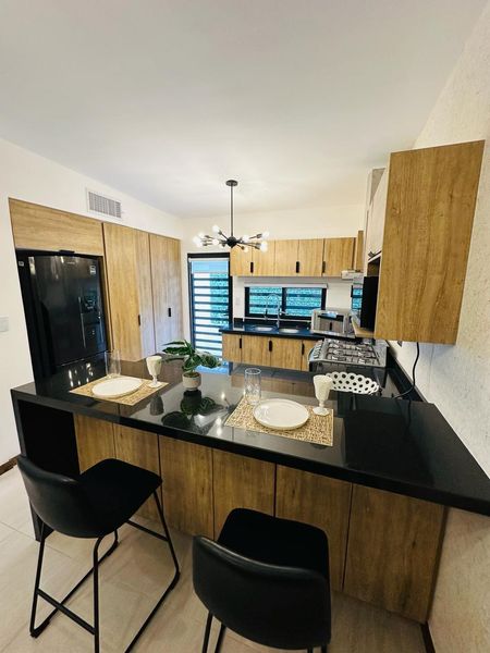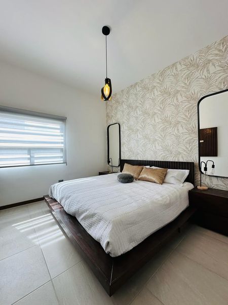 Acabados: Pisos de cerámica esmaltado rectificado 60x60, zoclos, marcos y puertas de encino, ventanería de doble vidrio térmicas, cisterna de 2800lts.