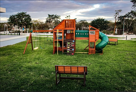 AMENIDADES: yoga zone, gimnasio al aire libre, juegos infantiles, canal de nado, alberca infantil, pabellón cultural, parque para mascotas, cancha de fútbol, pabellón social.