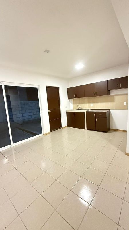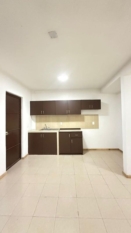 cocina integral con alacena, fregadero y área habilitada para estufa