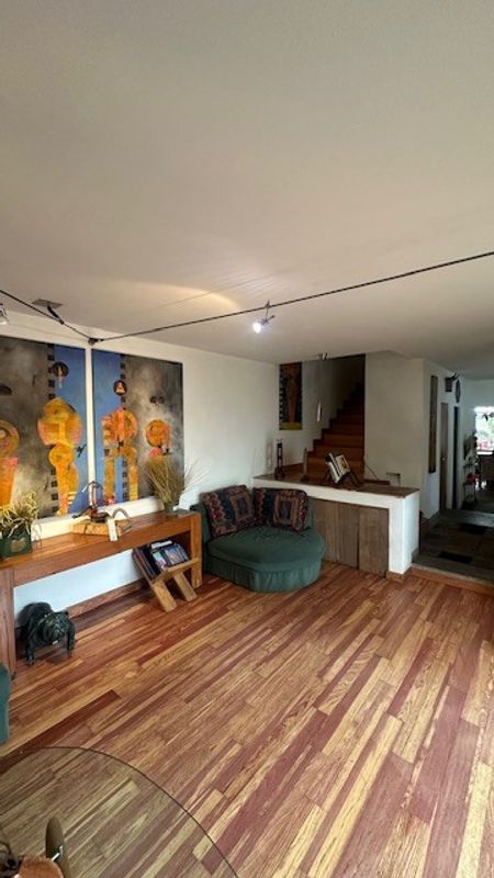 Cuajimalpa, El Molino, La Palma. Bonita y amplia casa en condominio horizontal de 19 casas. 180m2 de terreno y 270m2 de construcción. Sala, comedor, cocina con desayunador, terraza, 3 recámaras, 3.5 baños, family en segundo piso, cuarto de servicio y de lavado. 2 estacionamientos. Pisos de madera, porcelanato, Calientita e iluminada. Áreas comunes: jardín con juegos infantiles. Seguridad