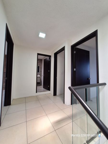 Planta alta: recámara principal con vestidor y baño, y atrás hay dos más con clóset y baño completo compartido