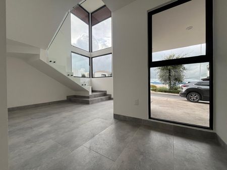 Hermosa casa nueva, moderna, en esquina junto al área verde con opción a 4ta recamara en planta baja con baño completo, amplio jardín, cocina en isla con una despensa amplia, sala y vestíbulo de doble altura, 360° de vistas increíbles cuenta con pasillo lateral.