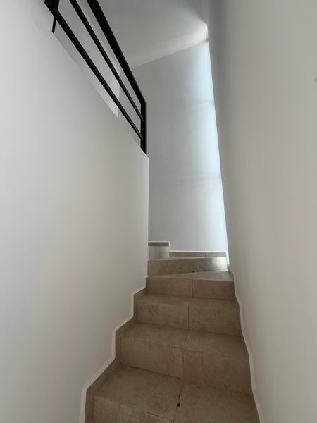 La propiedad está distribuida en 2 plantas y cuenta con 3 recámaras, incluyendo una cómoda habitación en planta baja. Cada una cuenta con clósets en carpintería y baño propio. La cocina integral, equipada con cubiertas de granito, se integra perfectamente a los espacios sociales.