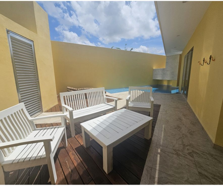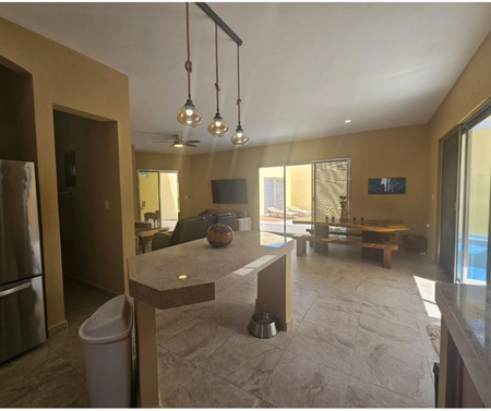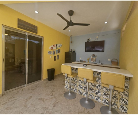 Casa en esquina amueblada y equipada lista para ser la casa de tu sueños en la playa en la comunidad de Chuburna puerto una zona de alto crecimiento en la costa Yucateca con un mar de aguas cristalinas y muy poca profundidad siendo seguro para la familia .Esta propiedad nos da la bienvenida con una entrada muy hermosa dando vista a la piscina, está conformada en su planta baja por la sala ,comedor, una cocina muy amplia en estilo abierto ya vestida con gabinetes de madera y meseta de mármol de la región alacena, cuenta con una area de bar en el exterior 2 baños y medio , piscina con fuente y sistema de filtrado ,cochera techada con portón eléctrico, área de lavado, en el segundo piso nos encontramos con dos recamaras muy amplias con closets vestidores y cada una con baños muy amplios con diseños especiales con un traga luz en baño principal teniendo una regadera muy amplia y cada recamara se divide con un pasillo muy bonito por fuera con cristal templado , en el tercer piso nos encontramos con una pérgola con vista a la ría para tener un atardecer especial la casa cuenta con un terreno muy amplio en su parte trasera ideal para seguir creciendo o construir un jardín o área de trabajo el equipamiento de la casa cuenta con aires acondicionados ,ventiladores, hidroneumático ,sistema de osmosis ,sistema de ensuavisador de agua, paneles solares 10 .