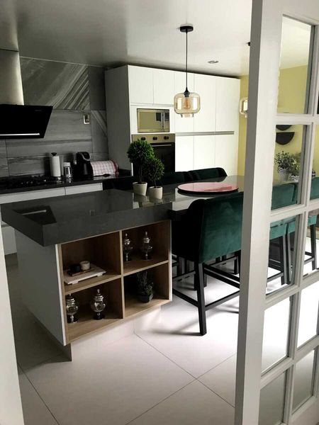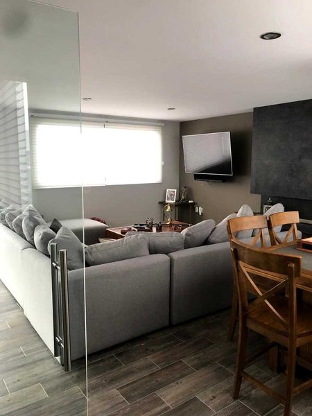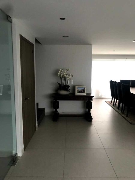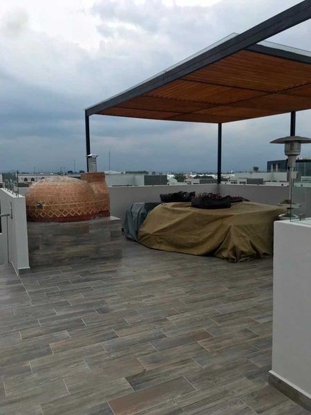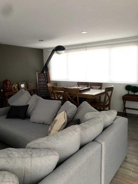 Sala,comedor, cocina integral, atrás de lavado, cuarto de servicio, jardín, estacionamiento para 2 autos,.3 recámaras todas con baño ,clóset, la principal con vestidorRoof