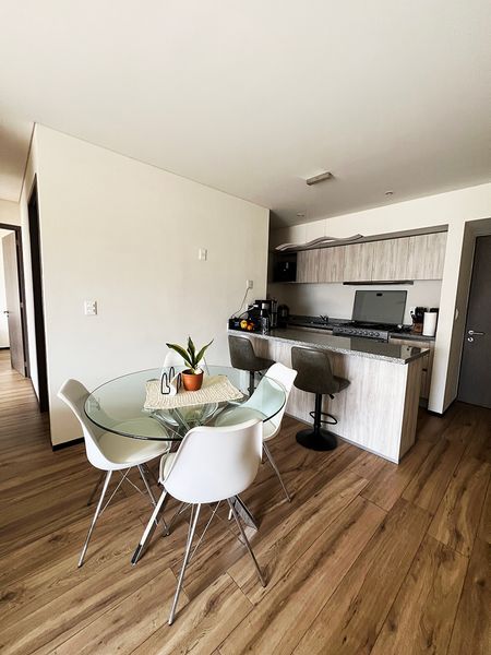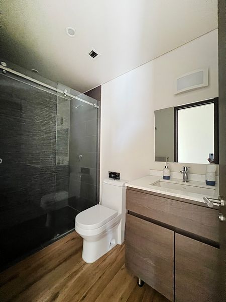 Seguridad 24 hrs, CCT, elevadores , estacionamiento de visitas, lobby, gimnasio , salón lounge, alberca, gym, salón de yoga, terrazas, jardines, parque con juegos infantiles, business center, salón de eventos, área para mascotas y senderos para jogging.
