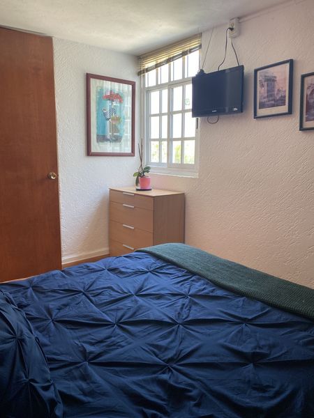 Hermoso cuarto en renta, amueblado, entrada independiente, con baño completo, cama matrimonial, y servicios incluidos en la renta.