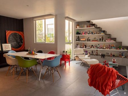 Increíble departamento en dos niveles en San Miguel Chapultepec. En el primer nivel: cocina integral, área de lavado, estancia y dos baños completos (uno con tina), amplia recámara con vestidor y balcón. En el segundo nivel: Una habitación o estudio, terraza y balcón. Dos lugares de estacionamiento independientes con portón eléctrico. El roof garden común tiene asador y dos baños .