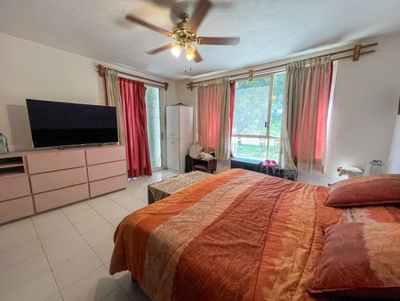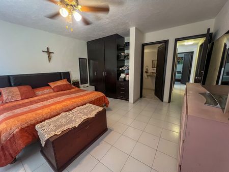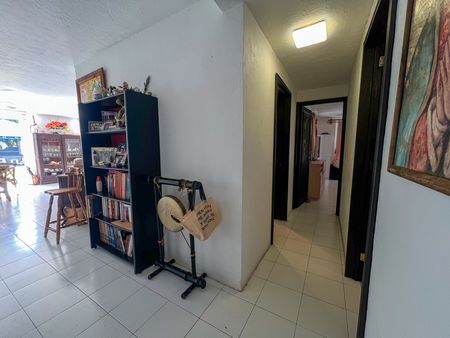 Tres recámaras muy amplias, la principal con vista al campo de golf con clóset y baño completo, recámaras secundarias con clóset y baño completo compartido, una de las recámaras secundarias con vista al campo de golf, sala, comedor, cocina equipada, terraza, área de lavado.