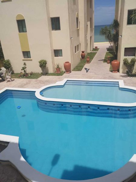 Departamento en 3er piso frente al mar, en un conjunto habitacional conocido como " Coral beach" y cuenta con una excelente ubicación antes de la conocida "Feria de Chicxulub".