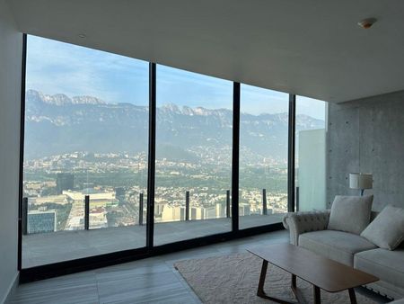 Increíble departamento en Valle Oriente torre Kalah en piso alto, semi amueblado y equipado, con una vista panorámica a la Sierra Madre que te dejará sin aliento.