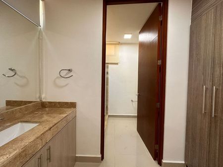 La recámara cuenta con cama King, sillón, clóset vestidor y baño. Además, el departamento incluye servicio de internet.