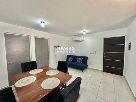 Ubicado en planta baja dentro de un fraccionamiento cerrado con acceso controlado, este acogedor departamento amueblado cuenta con: 2 recámaras