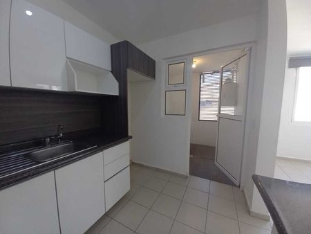 Este departamento está en esquina, en planta alta, tiene 2 recámaras, 2 baños completos, cocina integral, patio de lavado, área de tv y cochera para un auto.