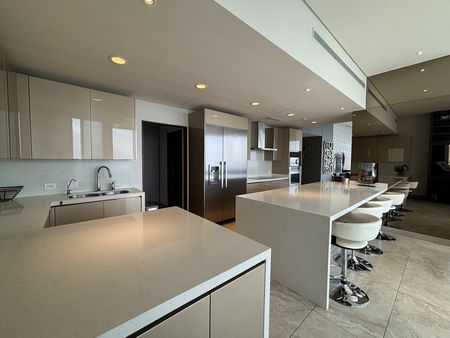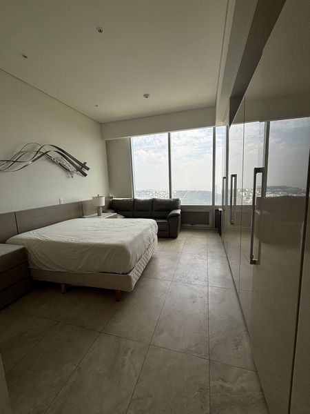 Departamento en el piso 52, amueblado y equipado,255.60 m² de interiores,3 recámaras, incluyendo una principal con vestidor y baño.