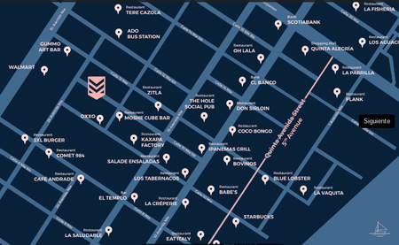 Ubicado en el corazón turístico de Playa del Carmen, con solo 50 unidades y a 3 cuadras (5min) de la famosa Quinta Avenida, ubicación ideal, muy cerca de la playa y rodeada de supermercados, restaurantes, bares y con la estación de autobuses a solo una calle.