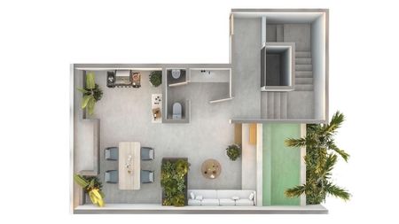 - Rooftop privado con alberca, área lounge, medio baño y tarja