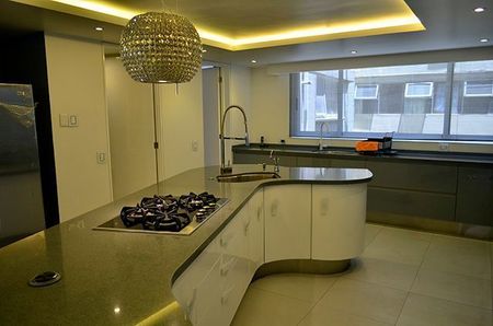 En excelentes condiciones, con una preciosa cocina equipada, con barra y desayunador, sala de televisión y bar, ventanería doble argón, pisos de ingeniería, carpintería en pino color chocolate.