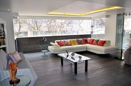 Las paredes interiores de color blanco que hacen ver el departamento luminoso.