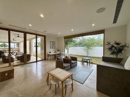 La casa se encuentra en el complejo de Tumin el cual se caracteriza por tener una cancha de padel, ser una de las privadas más tranquilas y estar rodeada de árboles espectaculares.