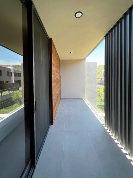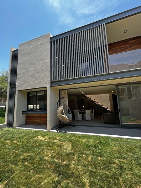 Exclusiva casa dentro de fraccionamiento con casa club y gran plusvalía, el modelo NUBE, cuenta en planta baja garaje techado 3 vehículos, baño de visitas, sala , sala tv, comedor , cocina equipada, jardín , terraza con bar, cuarto de lavado, cuarto de servicio con baño. En planta alta, recámara principal con sala vestidor y baño, dos recámaras con baño y vestidor cada una. Terraza en recámaras. Sobre anillo vial Junipero Serra.