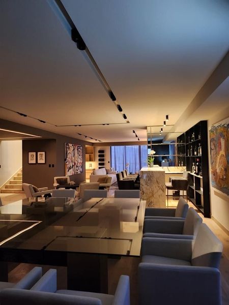 Descubre el lujo y la comodidad en este impresionante penthouse de dos niveles, completamente terminado, decorado y amueblado, listo para habitarse. 4 amplias recámaras, cada una con baño y vestidor