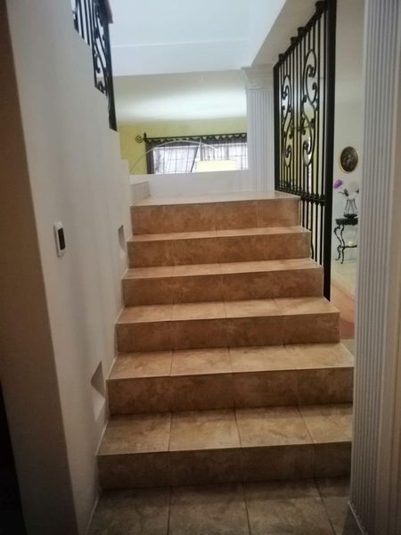 Casa de dos plantas con acabados de lujo, madera de caobilla, herrería forjada y piso español.