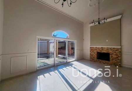 La residencia está conceptuada en dos plantas. En la planta baja cuenta con recibidor, sala con chimenea, comedor, área de cocina, una recámara con baño completo, estudio, cuarto de T.V., cuarto de lavado, medio baño y acceso a un amplio jardín ideal para reuniones, equipado con asador y pérgola. En la planta alta se ubican tres recámaras, incluyendo la recámara principal que destaca por su walking closet y baño completo con jacuzzi, además de otros dos baños completos. Los pisos son de fina loseta en la planta baja y de madera parket en la planta alta, lo que aporta elegancia y calidez a los interiores. El estado de conservación es magnífico, resultado del constante mantenimiento tanto interior como exterior.