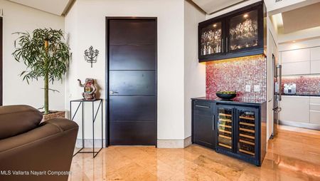 Enclavado en las serenas colinas de Amapas, a pocos minutos de la vibrante Zona Romántica y la icónica Playa de Los Muertos, Horizon 206 ofrece una mezcla perfecta de privacidad, lujo y comodidad. Esta unidad de esquina norte en la Torre Sur cuenta con vistas panorámicas del océano, la ciudad y la exuberante selva, con su ubicación a pocos pasos de las piscinas climatizadas del edificio. Con una cuidada distribución de 2 dormitorios y 2 baños, este departamento destaca por su amplio diseño, que ofrece la máxima privacidad entre el dormitorio principal y el de invitados, situados en extremos opuestos de la unidad. En el corazón del espacio, la cocina totalmente equipada, completa con un refrigerador de vino y zona de bar, se conecta a la perfección a la amplia sala de estar y comedor, creando un flujo armonioso a la amplia terraza. El dormitorio principal cuenta con un vestidor, una ducha de concepto abierto y una bañera, perfecta para relajarse. Suelos de mármol en todo añade un toque de sofisticación, mientras que las ventanas de esquina adicionales traer abundante luz natural.