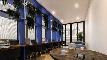 Cuenta con lobby, dos elevadores, gimnasio, parque vivo situado en el cuarto nivel y espacios de trabajo.