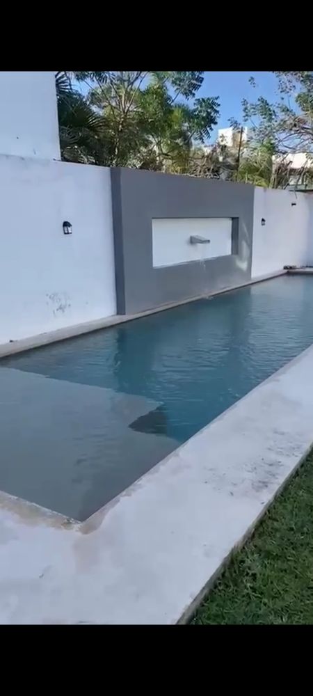 Terreno 483, const 210, 4 recámaras con su baño cada una, la principal y secundaria con vestidor, las otras dos con closet, una de ellas en planta baja, medio baño, area de lavado cubierto con instalación para lavadora y secadora, lavadero de granito, boiler de gas, tanque estacionario, estacionamiento hasta para 4 autos con malla sombra, recámara principal con terraza a la calle, jardin con terraza techada, pasillo acceso para servicio, cocina con estufa y barra de granito, aire acondicionado en todas las habitaciones y estancia y comedor, así como ventiladores de techo, mosquiteros en todas las ventanas y canceles, cisterna, tinaco, 200 pesos de aportación mensual, agua de pozo (o sea, no se paga), alberca chukum con fuente, sistema de riego
