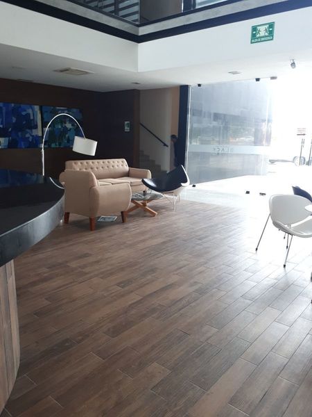La Oficina cuenta con pequeña area de servicio, y un espacio de 70 m2 , cuenta con 2 cajones de estacionamiento techados.