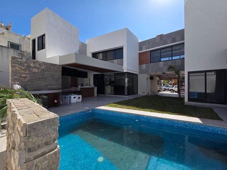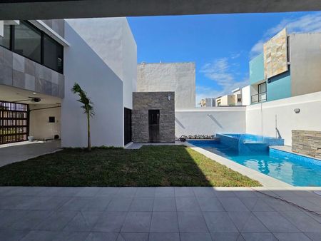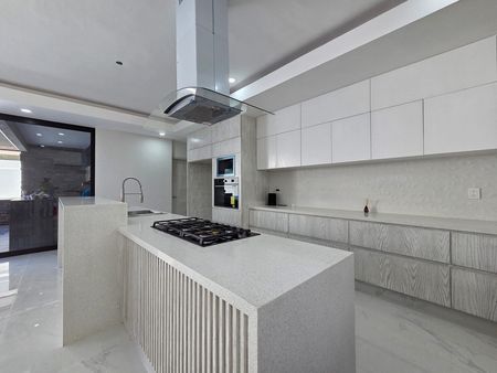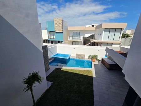 Alberca con Jacuzzi, Jardín, Terraza Apergolada con Bar, Baño Completo para el Área de la Alberca, Sala Comedor con Doble Altura, Cocina Equipada con Barra e Isla de Cuarzo, Medio Baño, Recámara con Baño y Vestidor, oficina, Jardín Interno, Garage Techado para 3 Autos, Portón Eléctrico, Área de Lavado.