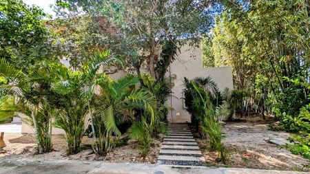 Es una casa con un estilo muy particular toda de chukum, madera y vegetación por lo que te da un sentido de mucha paz y frescura.