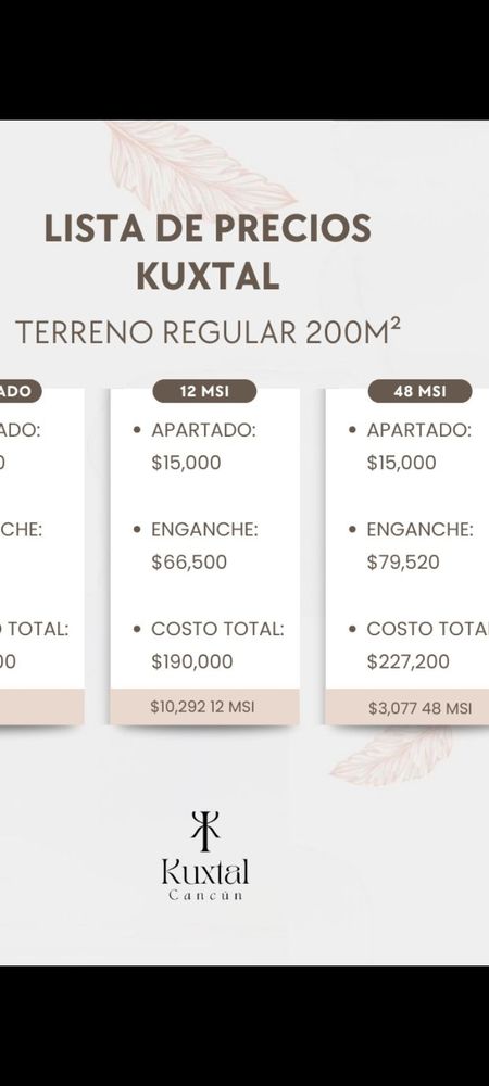 kuxtal:  Preventa de Terreno en cancun, Metros de 200 Urbanizacion Incluida Calles Blancas,luz a pie de lote, agua de pozo drenaje biodigestor, Amenidades destacadas,Casa Club, Parque Central lineal,lberca ,Senderos Peatonales. Parque infantiles Area Comercial.
