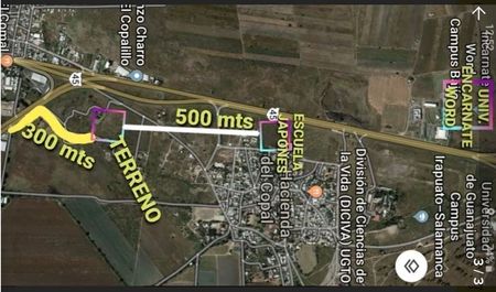 Terreno por Ex Hacienda del Copal, rumbo al CRIT, por la subida para incorporarse a la carretera Irapuato-Silao.Se acepta automóvil a cuenta.