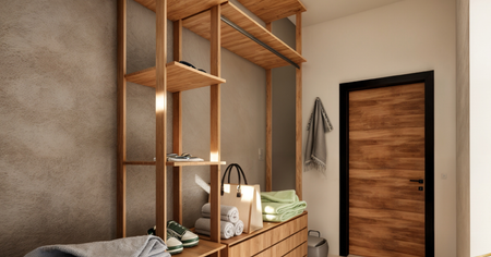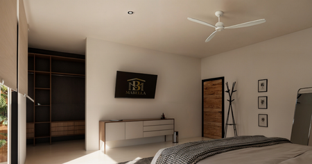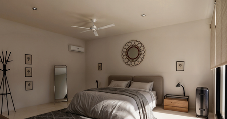 Recámara principal con balcón, área de closet vestidor y baño propio