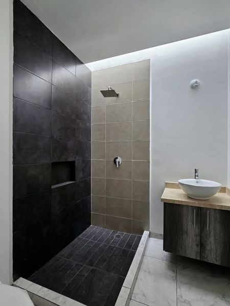 Planta alta: recámara principal con vestidor y baño completo, dos recámaras con clóset y baño en cada una