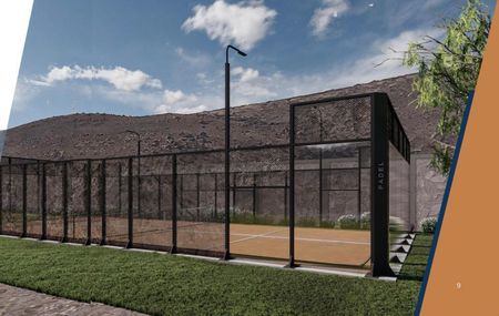 Cuenta con canchas de Padel, áreas verdes, acceso controlado y seguridad privada con vigilancia.