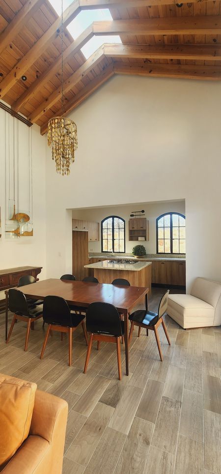 Sala-comedor con techo de doble altura: Un espacio amplio y luminoso que ofrece una sensación de grandeza.