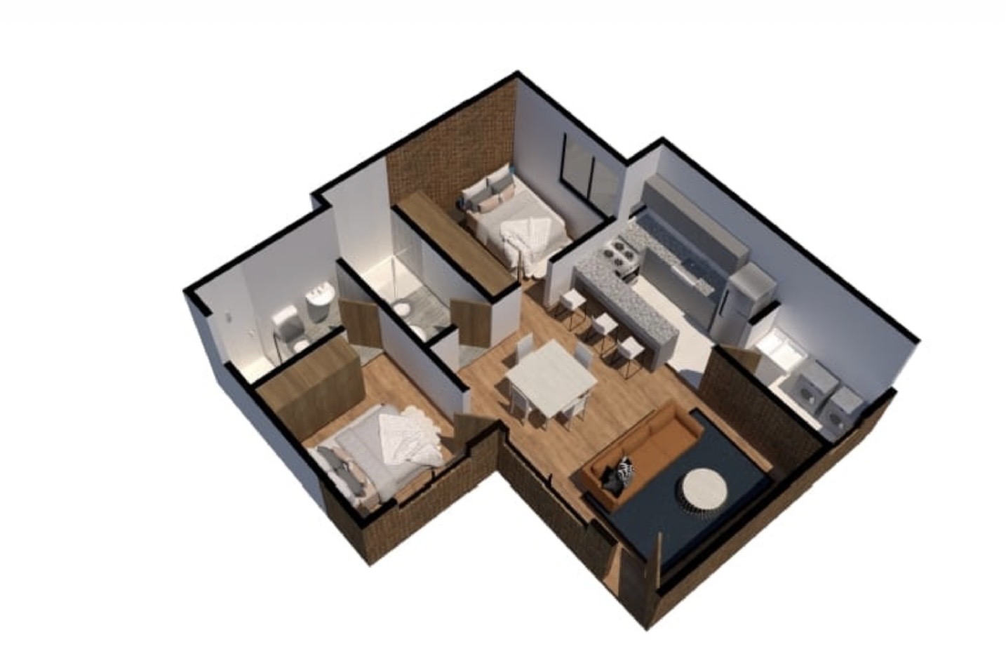 - Recámaras: 2 recámaras